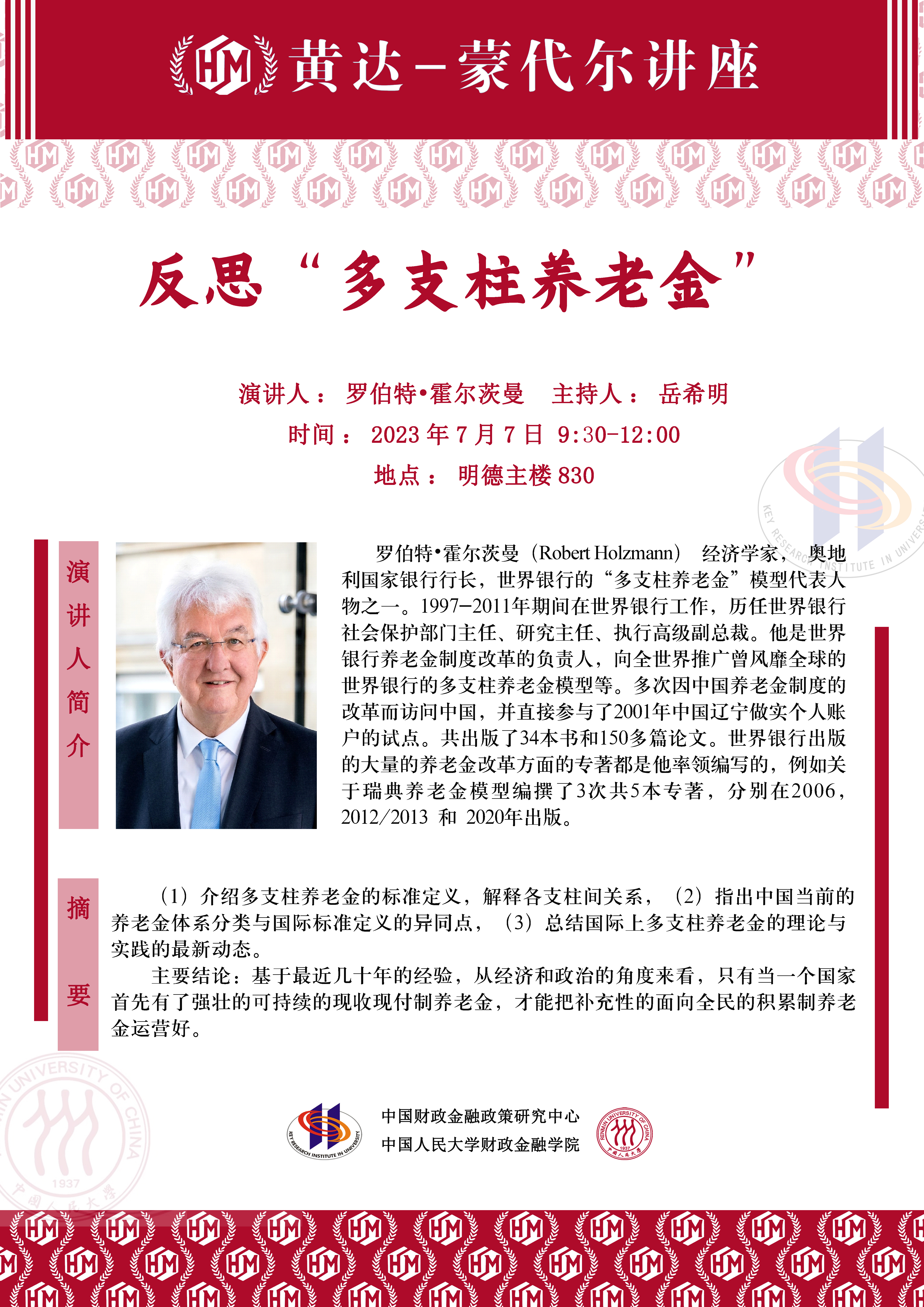 罗伯特·霍尔茨曼做客”黄达-蒙代尔“讲座