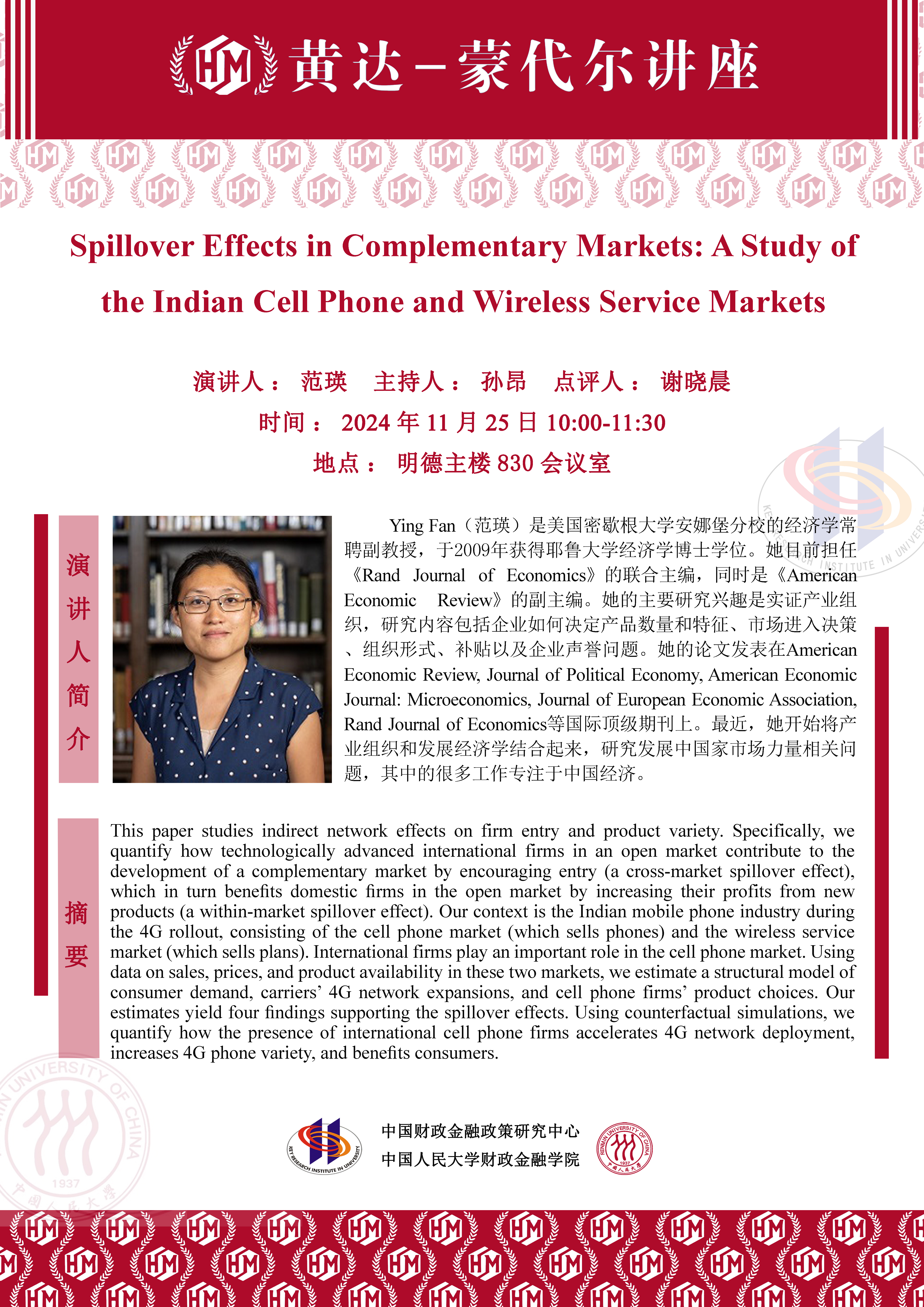 范瑛做客“黄达-蒙代尔”讲座