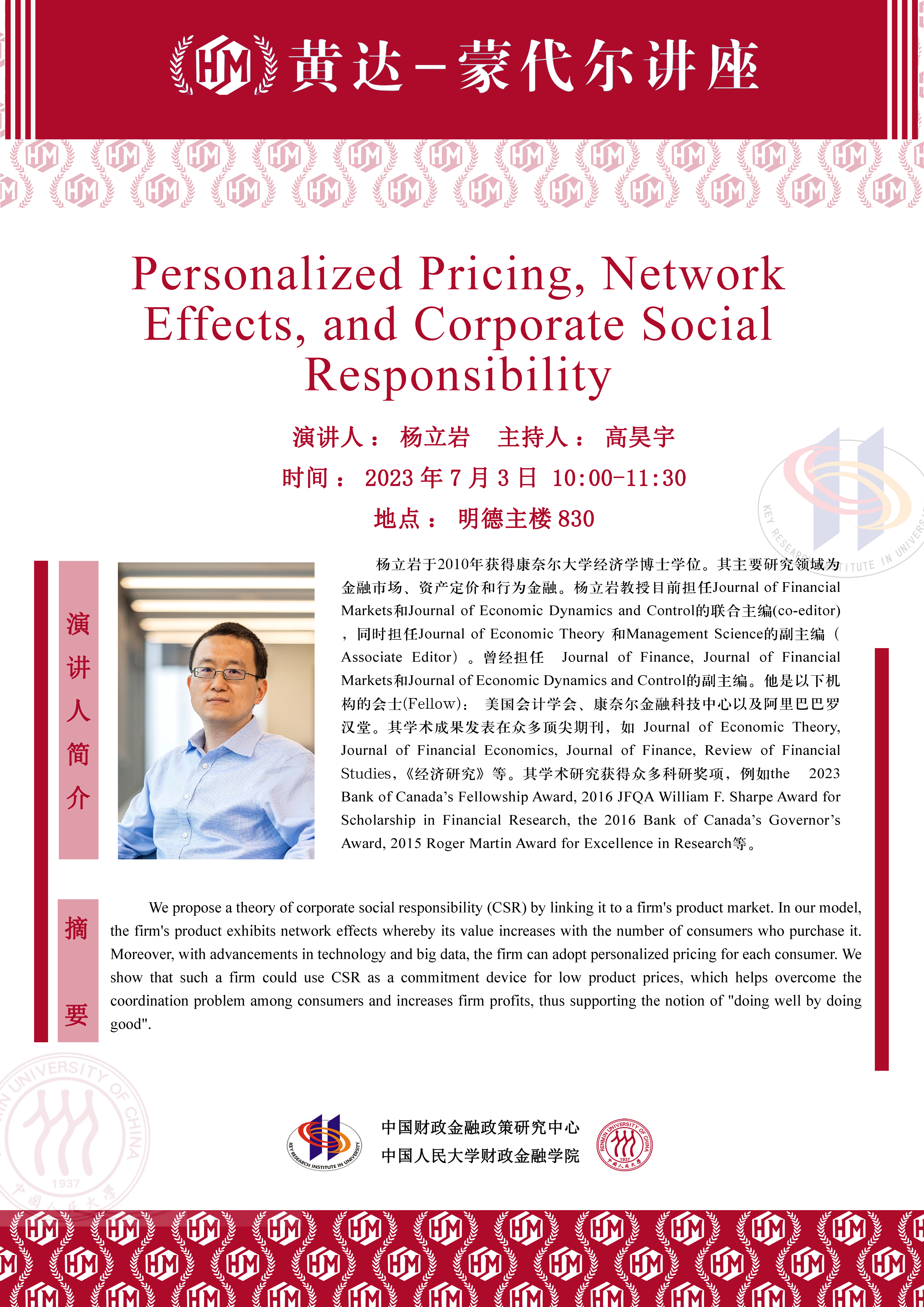 杨立岩做客“黄达-蒙代尔”讲座