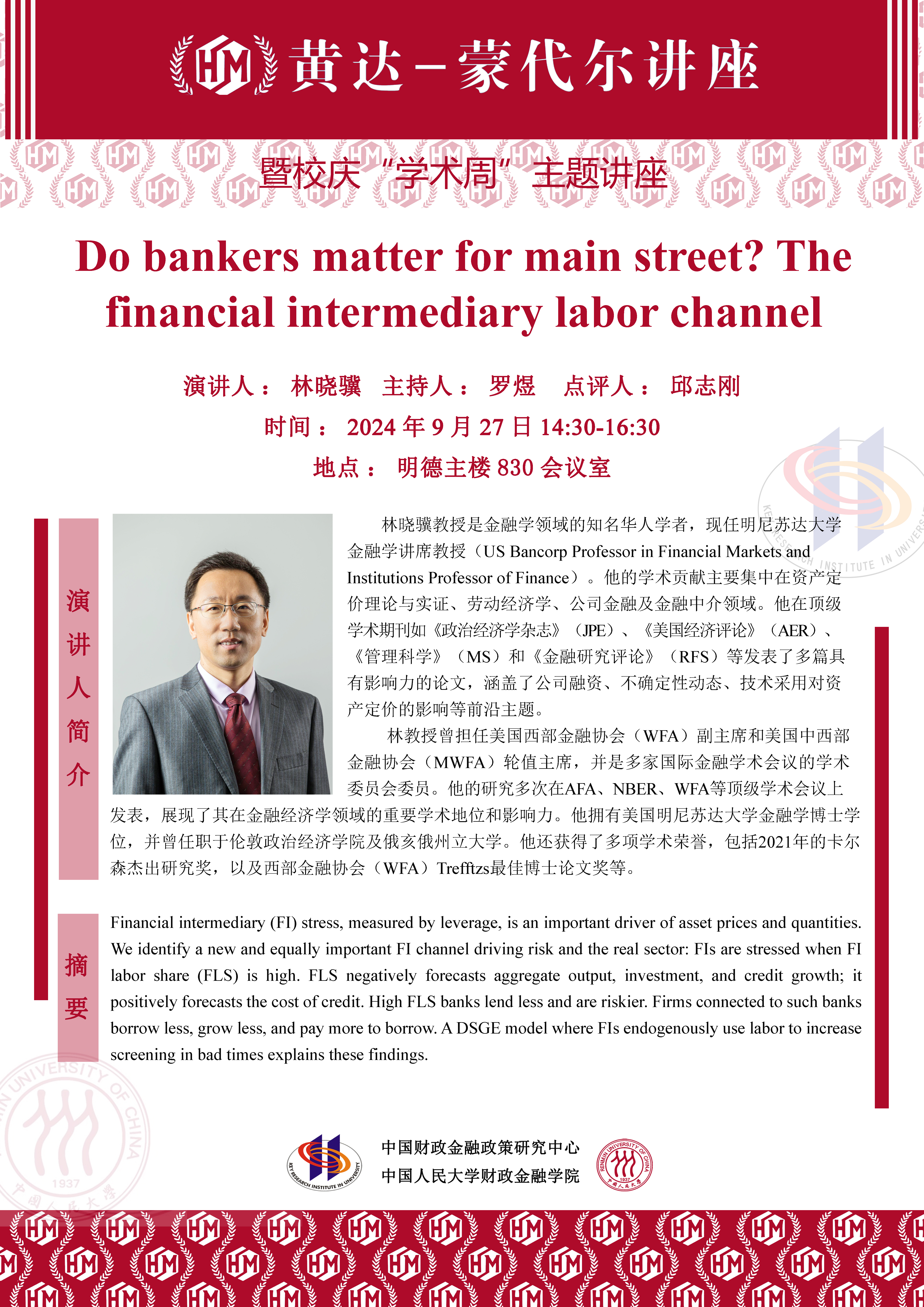 Allen N. Berger 做客“黄达-蒙代尔”讲座
